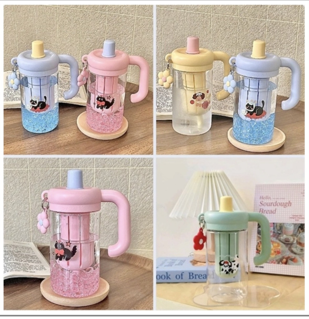 Bình Nước Nhựa Chú Mèo Bông Hoa